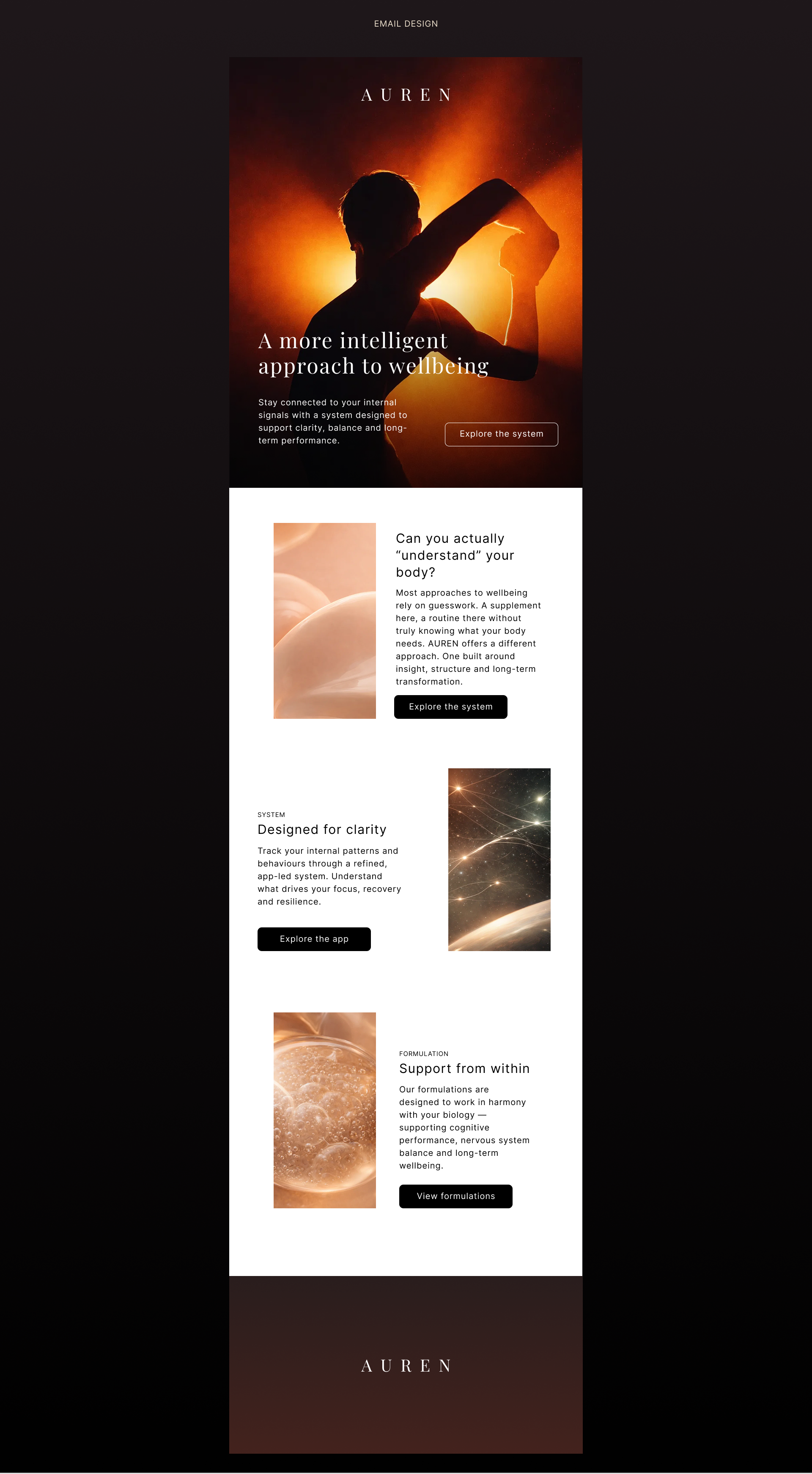 AUREN is built as a structured system, translating complex biology into a clear, intuitive digital experience.